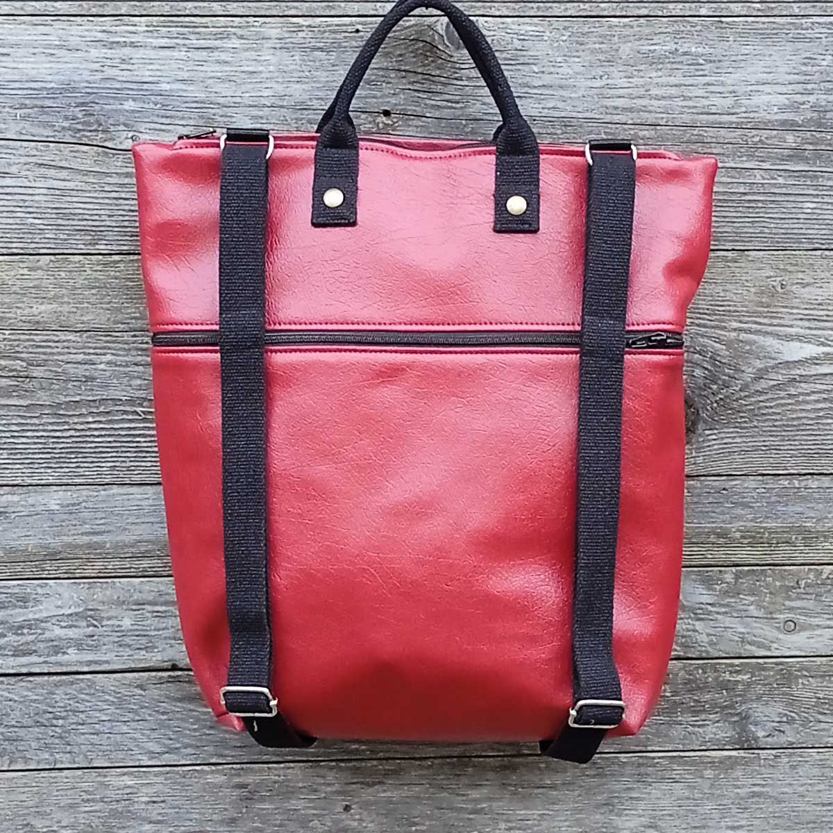 Borsa zaino unisex in PELLE RIGENERATA e tessuto che si può indossare a tracolla, a zaino o usando gli ergonomici manici. In n°2 secondi si trasforma da zaino a borsa tracolla e viceversa, praticissima quindi per te che sei sempre di corsa.