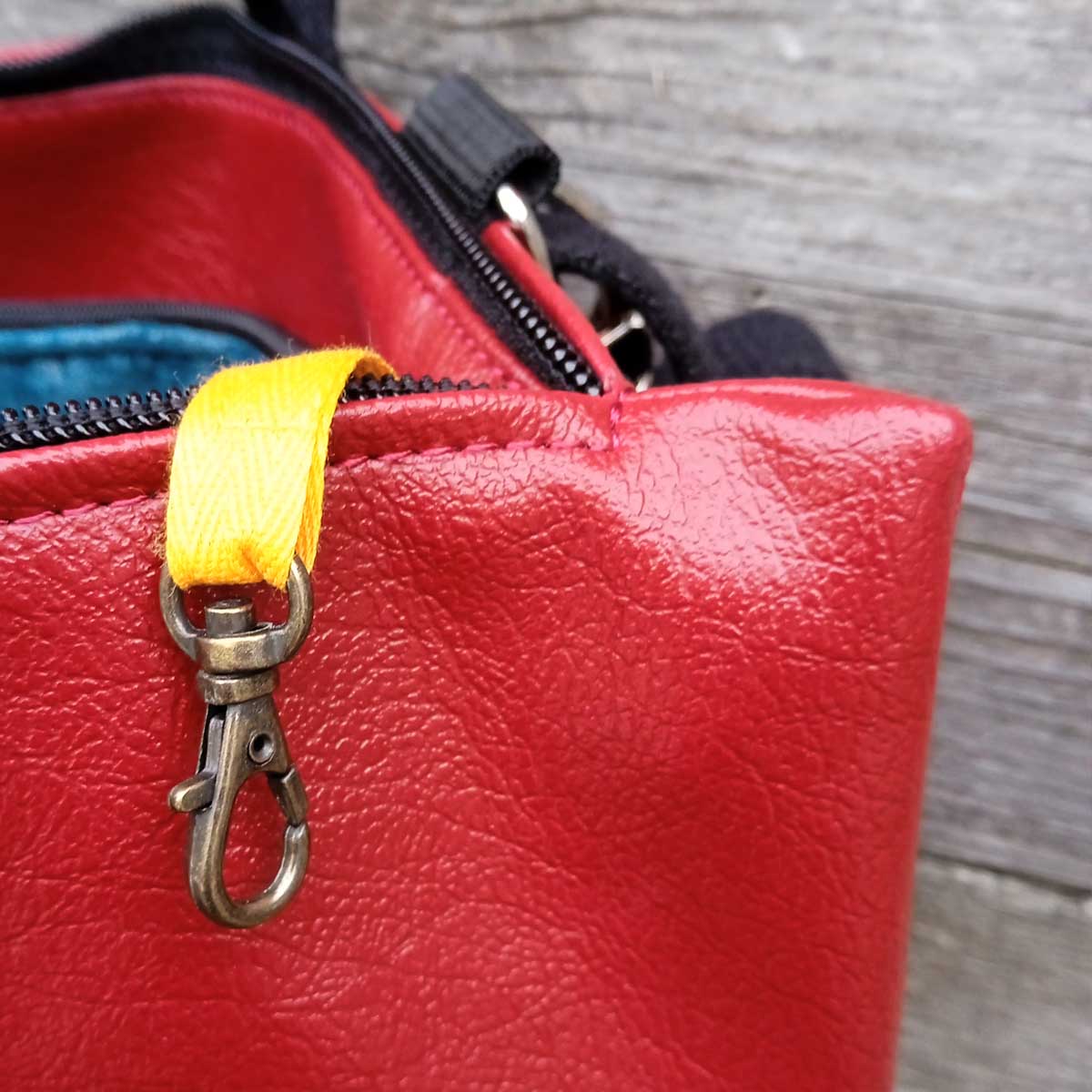Per completare l’interno, un laccetto con moschettone portachiavi. . Essendo tutti pezzi unici il tessuto della manica potrebbe variare.