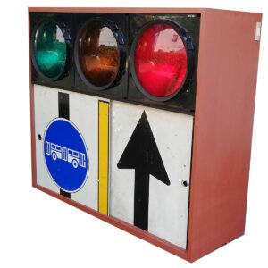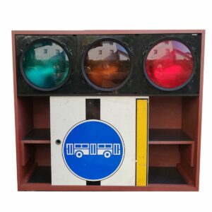 Sembrava un’impresa davvero impossibile quella di realizzare un mobiletto porta hi-fi recuperando un semaforo industriale e invece, anche questa volta, siamo riusciti a soddisfare la richiesta delle nostre clienti. Un cartello stradale dismesso è stato ridimensionato per creare le ante scorrevoli e il semaforo si illumina.
