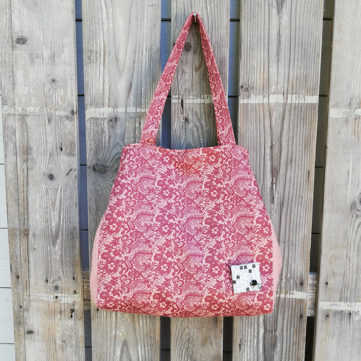 Samantha è una delle nostre clienti più giovani e l’abbiamo conosciuta tramite la sua simpaticissima nonna, grande amica della nostra cliente Luana. Con i preziosi input di Samantha abbiamo realizzato una forma completamente nuova e molto versatile. Quanto è importante parlare con la cliente, ascoltare le sue esigenze, come se fosse la nostra prima borsa! Lei ha scelto un raffinato tessuto con effetto pizzo e devo dire che ne esalta il design.